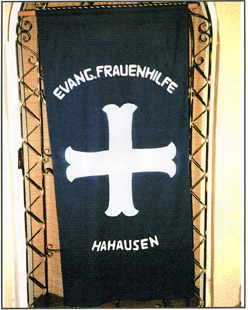 Fahne mit dem Zeichen der evangelischen Frauenhilfe. Foto: Maria Kalthammer